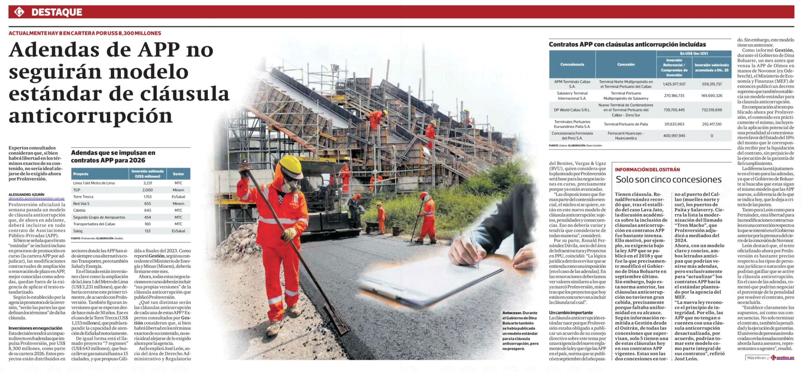 Adendas de APP no seguirán modelo estándar de cláusula anticorrupción