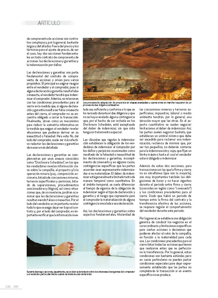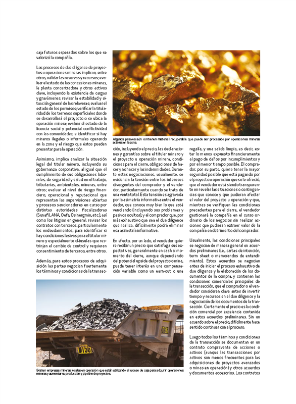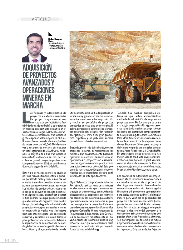 Adquisición de proyectos avanzados y operaciones mineras en marcha