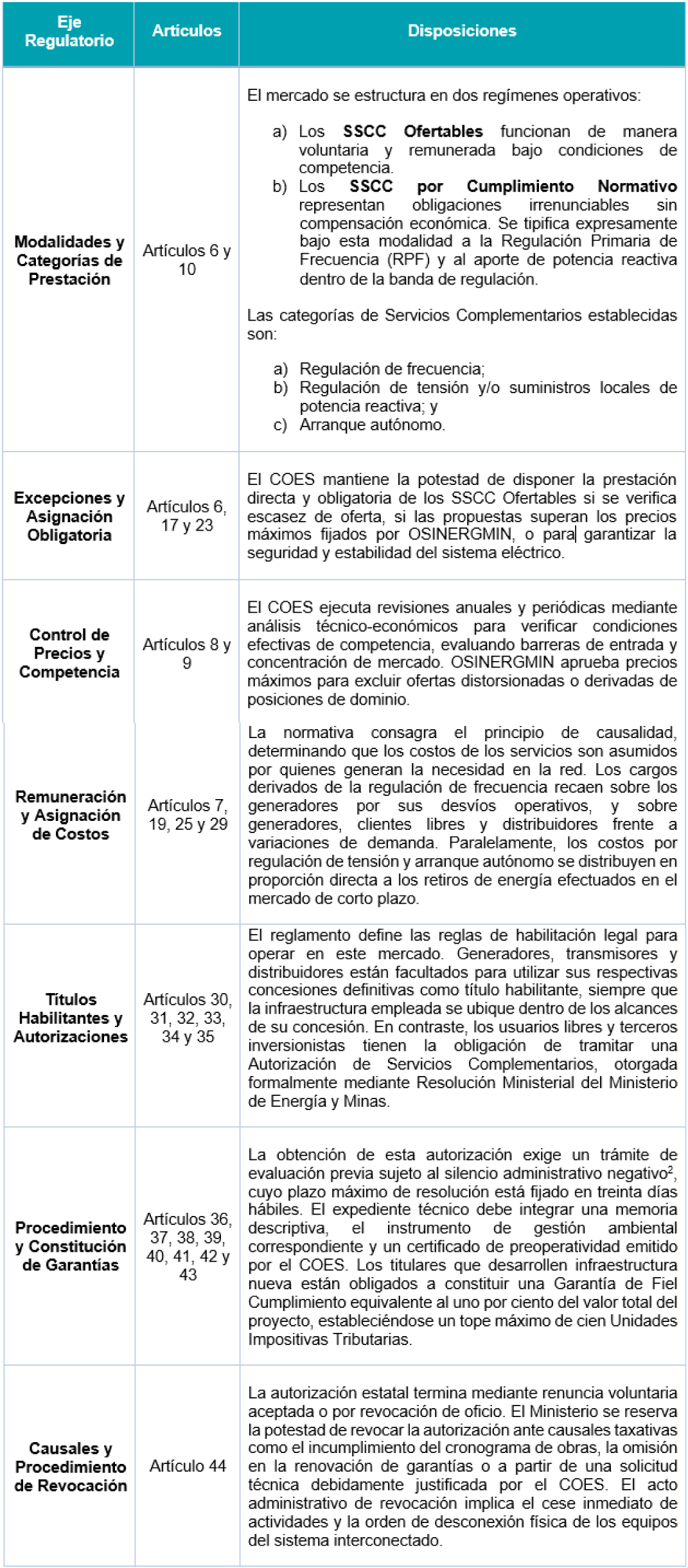 El Reglamento establece el marco normativo nacional para todas las actividades vinculadas a los Servicios Complementarios[1], aplicable a personas naturales o jurídicas que participen en cualquier etapa de su operación: provisión, oferta, demanda, operación y administración del mercado de Servicios Complementarios (en adelante, “SSCC”).