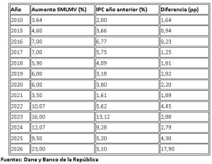 – En 2026, la motivación para cuestionar el Decreto 1469 de 2025 es lo contrario: que el incremento del 23 % resulta excesivo, si se compara frente a la inflación del año 2025 (de 5,1 %) y en general con los porcentajes de incremento históricamente aplicables en Colombia: