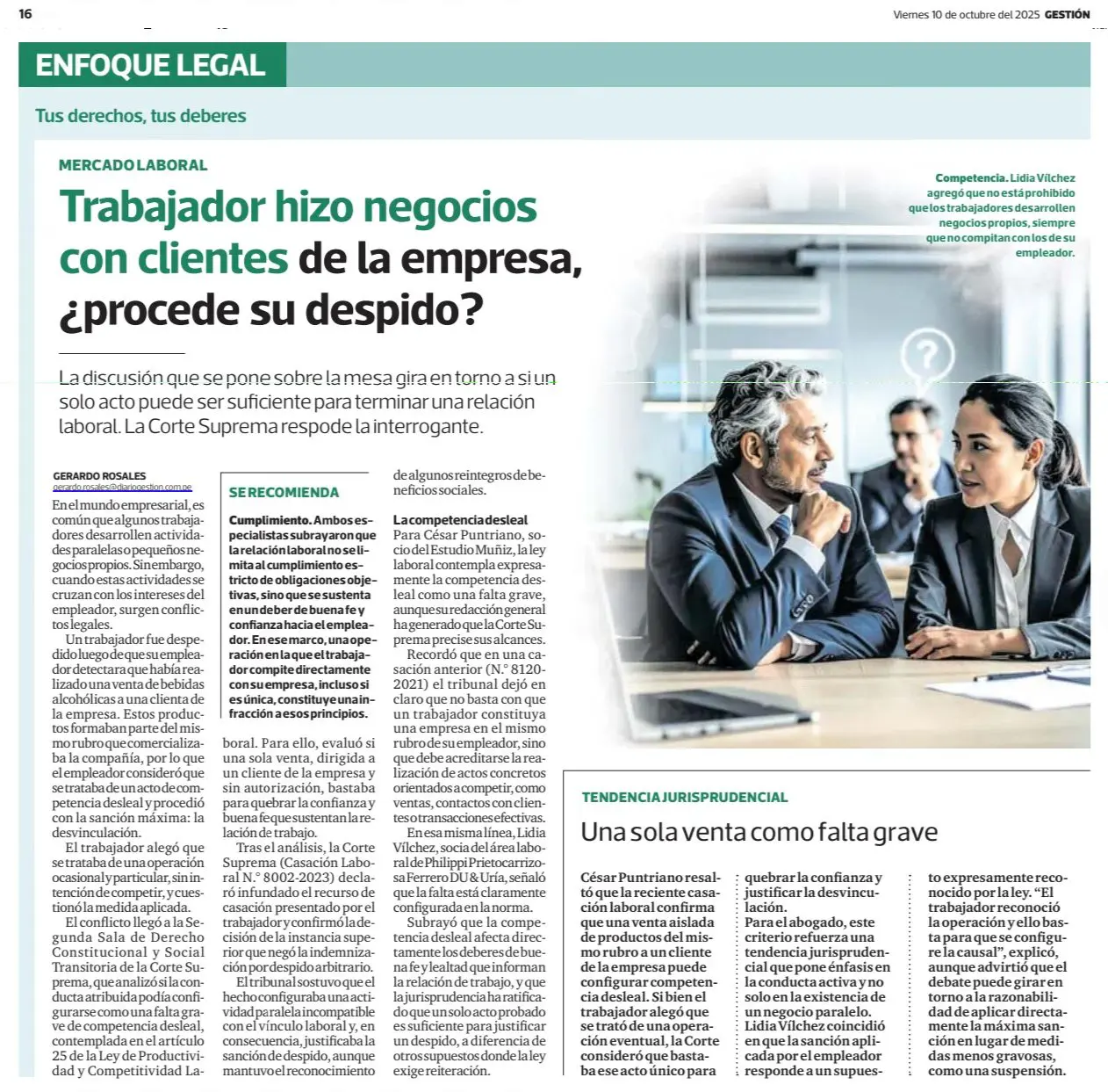Trabajador hizo negocios con clientes de la empresa, ¿procede su despido?
